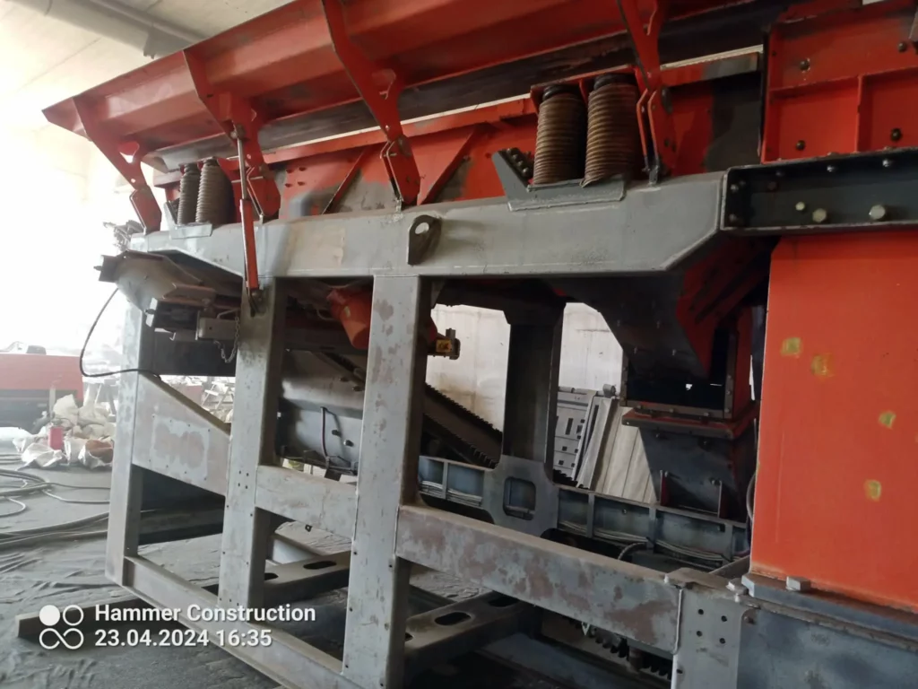 W miejscach osłabionych przez wieloletnie obciążenia mechaniczne wykonano prace spawalnicze. Naprawiono pęknięcia oraz wzmocniono newralgiczne fragmenty ramy i podzespołów, przywracając maszynie odpowiednią sztywność i bezpieczeństwo użytkowania.